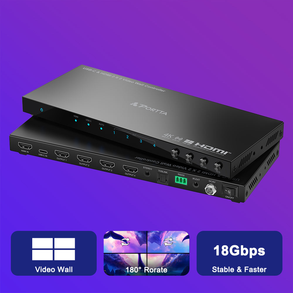 2x2 HDMI or USB-C Video Wall Controller 4K/60fpsRegular price