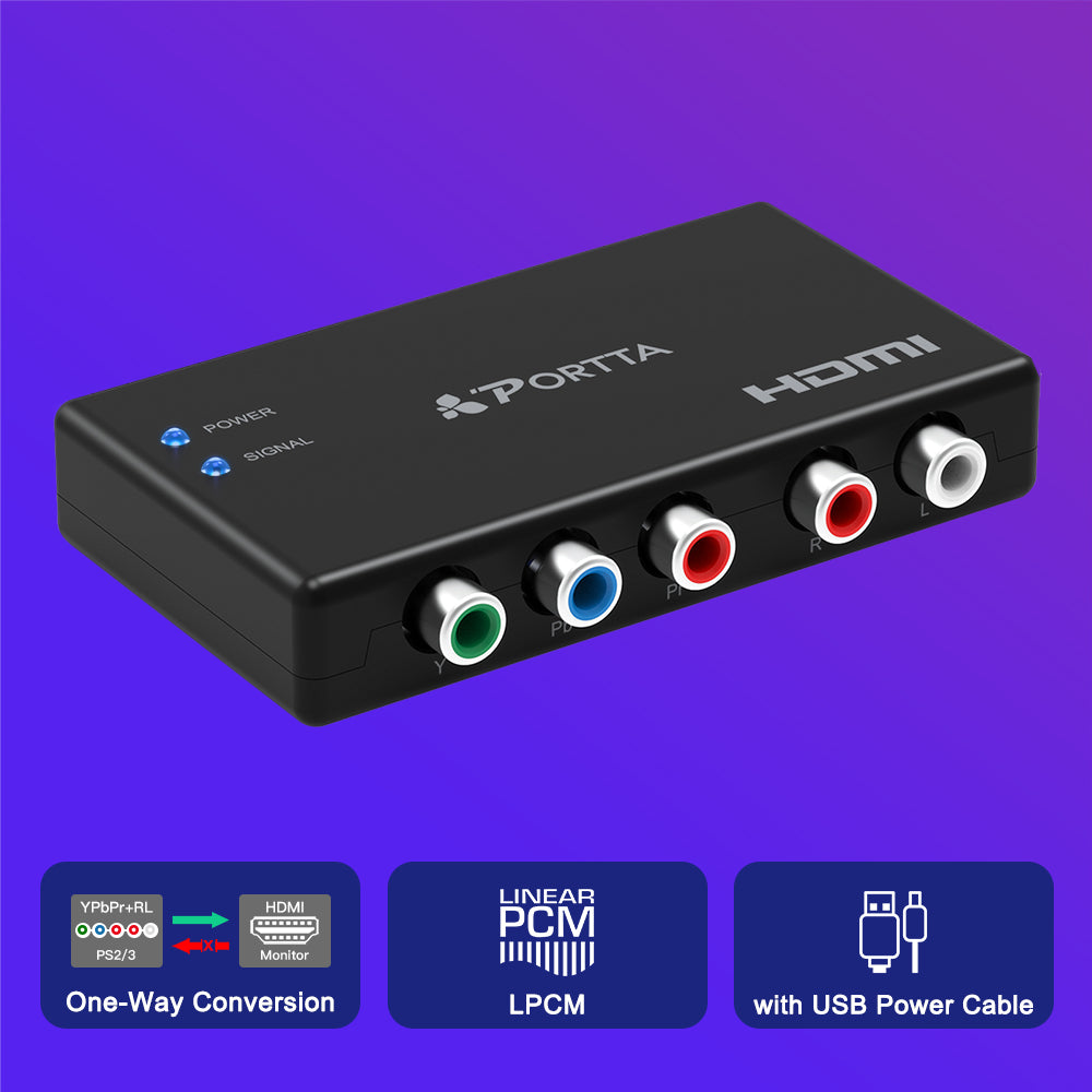 Component to HDMI Converter with USB Power Adapter and HDMI Cable
