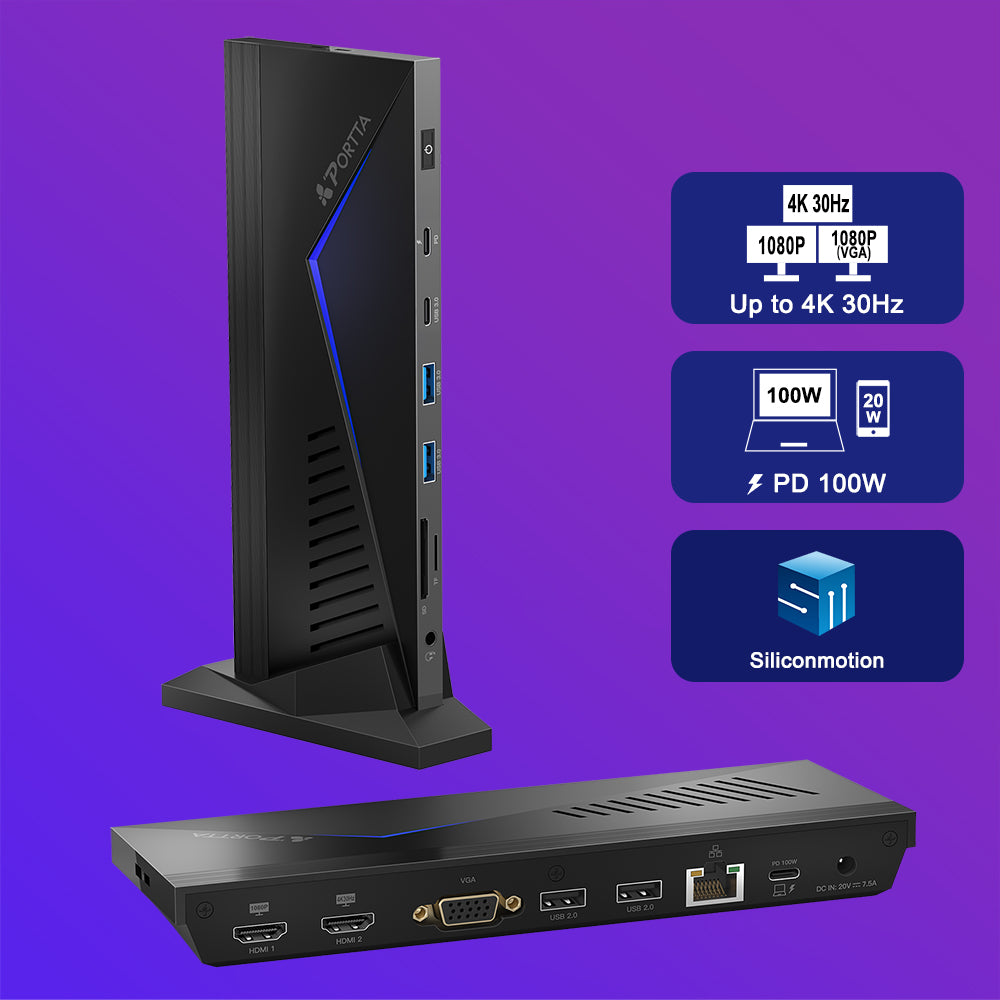 Silicon Motion 14 in 1 Docking Station for Dual HDMI + VGA MonitorRegular price